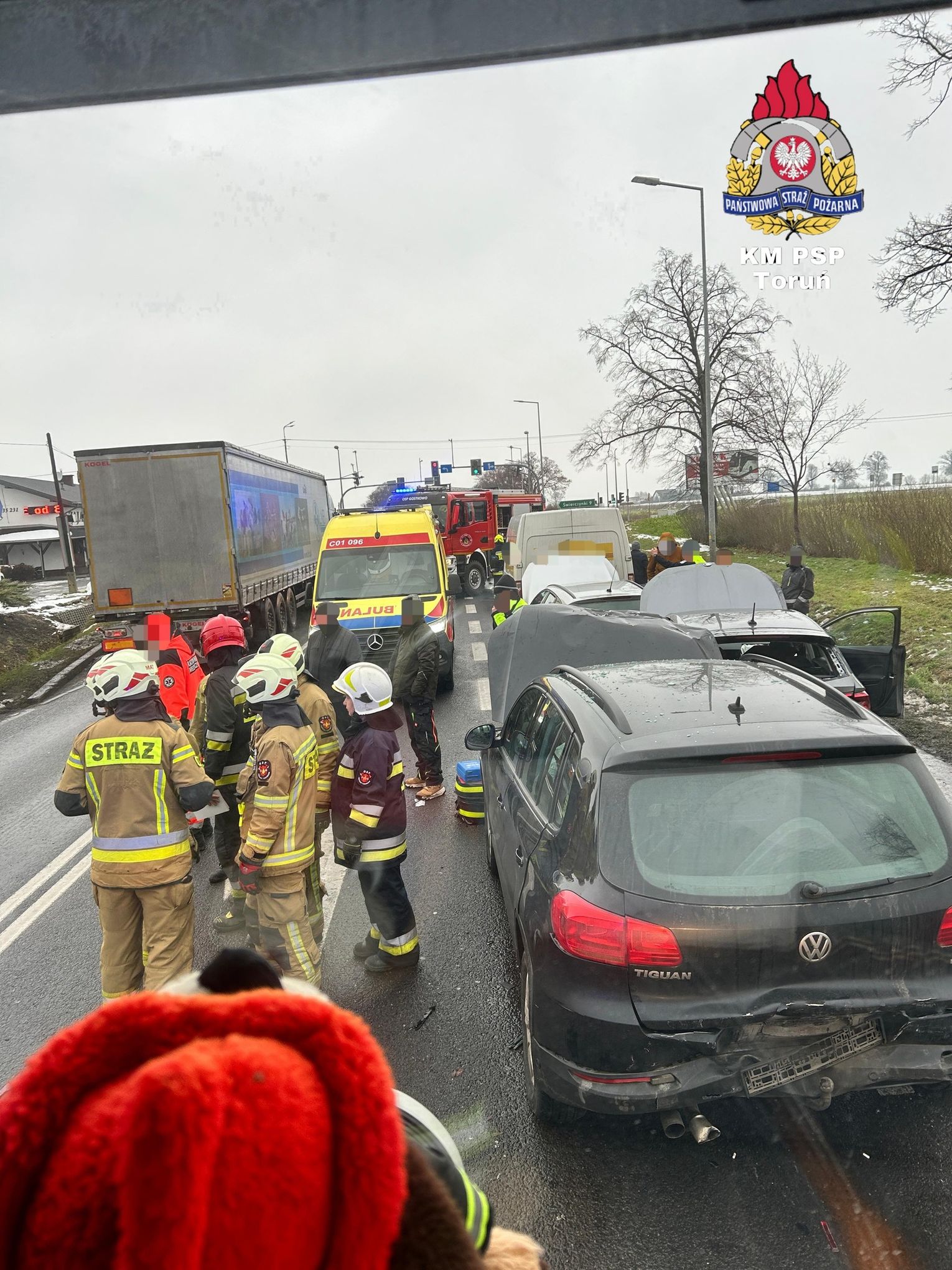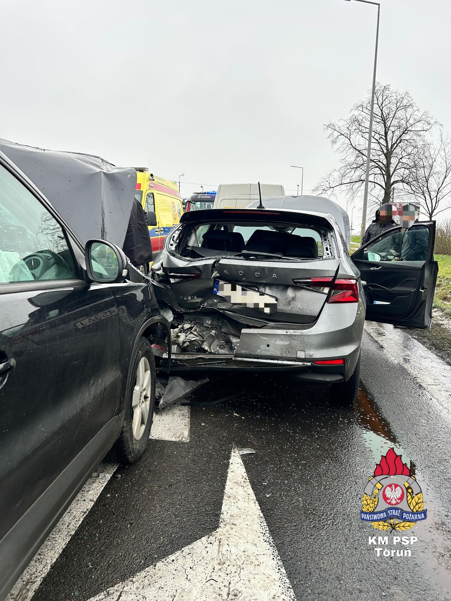 Ze wstępnych ustaleń policjantów działających na miejscu wynika, że kierujący pojazdem marki Audi nie zachował bezpiecznej odległości i uderzył w znajdujący się przed nim pojazd marki Volkswagen. Następnie doszło do zderzenia kaskadowego z pojazdami osobowymi marki Skoda i Opel oraz dostawczego pojazdu marki Renault. Informuje o tym asp. Dominika Bocian, rzecznik prasowy Komendy Miejskiej Policji w Toruniu.