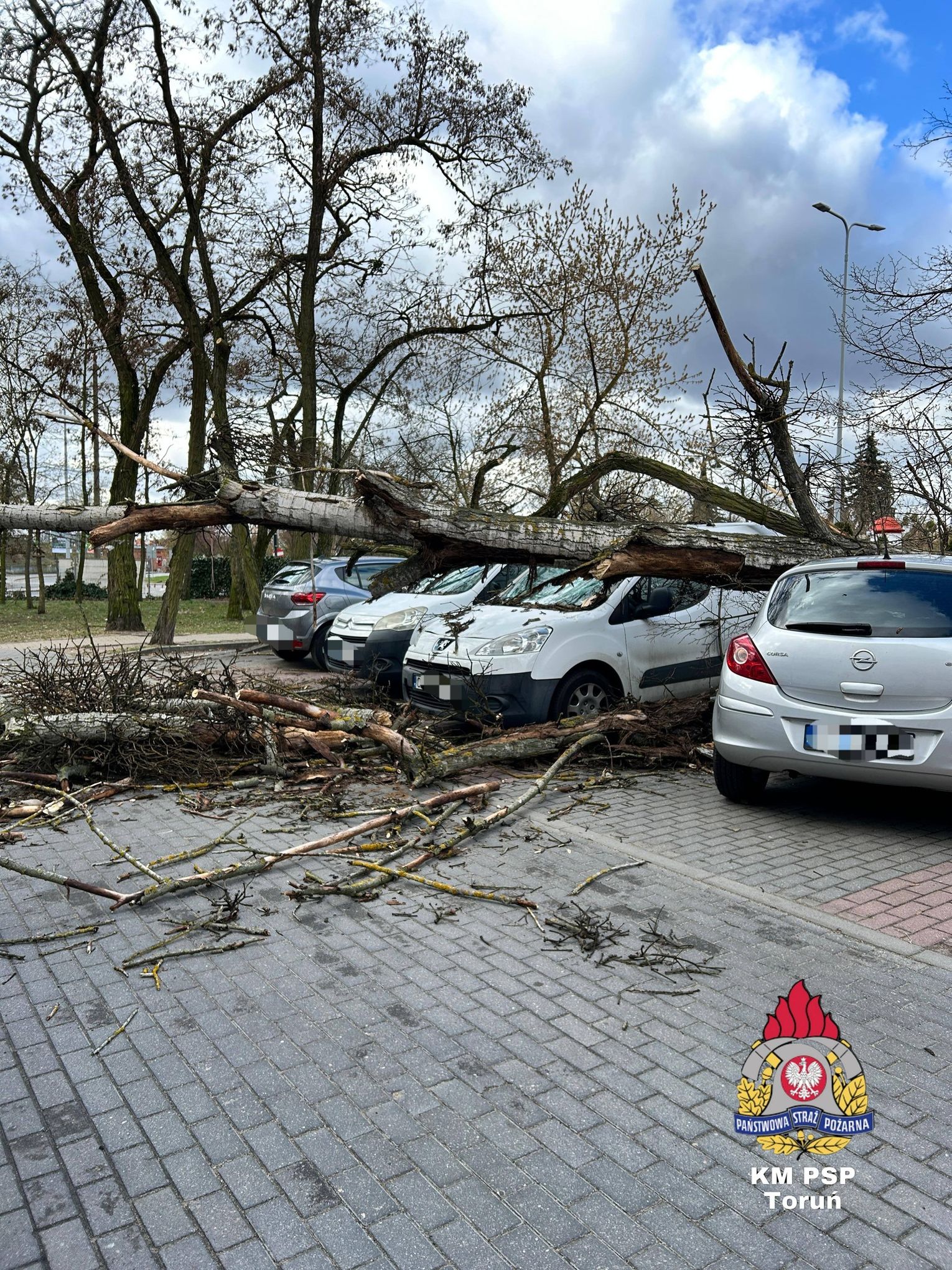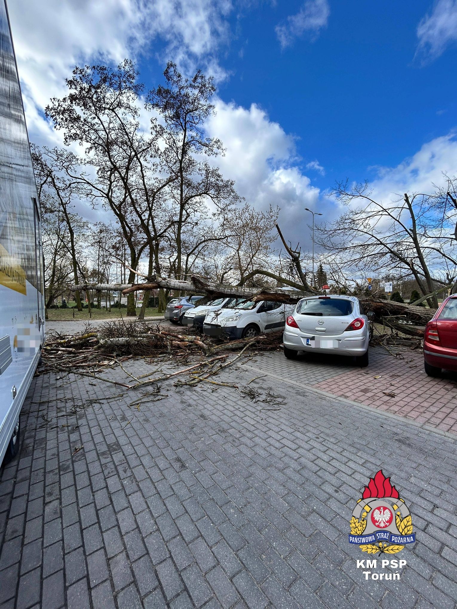 W tym wypadku uszkodzeniu uległo od 3 do 5 pojazdów (zależnie od źródła), przy czym co najmniej jeden z nich został zniszczony w znacznym stopniu. Co widać na zdjęciu. Na szczęście w chwili upadku drzewa w samochodach ani w ich pobliżu nikogo nie było – nikt nie odniósł obrażeń.
