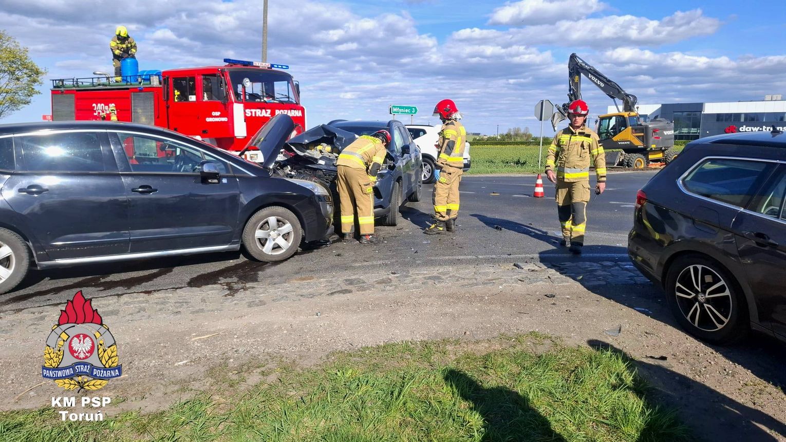 Na miejsce natychmiast zadysponowano zastępy straży pożarnej z Jednostki Ratowniczo-Gaśniczej nr 3 w Toruniu oraz ochotników z OSP KSRG Gronowo. Strażacy zabezpieczyli miejsce zdarzenia, odłączyli akumulatory w rozbitych wrakach oraz pomogli w udzielaniu pierwszej pomocy.